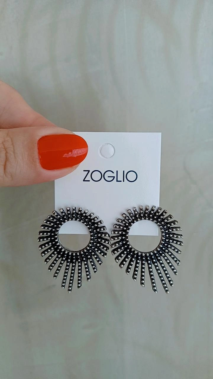Brinco todo em metal trabalhado em fomato de raios.