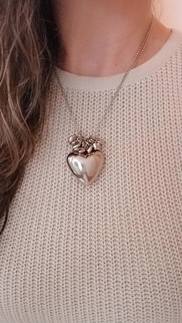 Colar estilo penquinha com 1 coração maior (de 35mm) e 14 mini coraçõezinhos